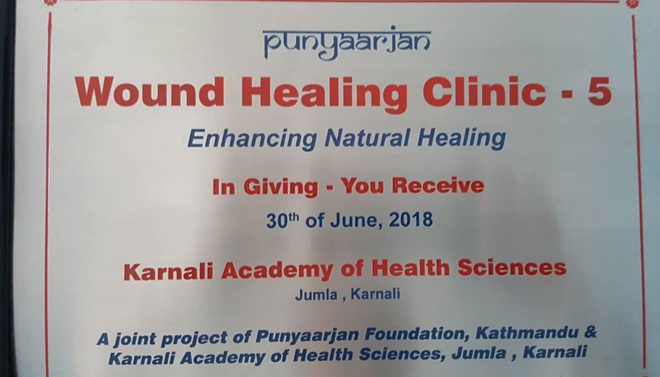 Clinic V — Karnali Academy of Health Science Jumla, Karnali, Nepal Wound Clinic established: 30th June 2018 Karnali Academy of Health Sciences (KAHS), established in 2011, aims to enable access to quality healthcare services and education for the people of remote areas at an affordable cost. KAHS has achieved this by establishing a health institute at Jumla and KAHS district to produce skilled health professionals to deliver quality health care services and conduct health research. |