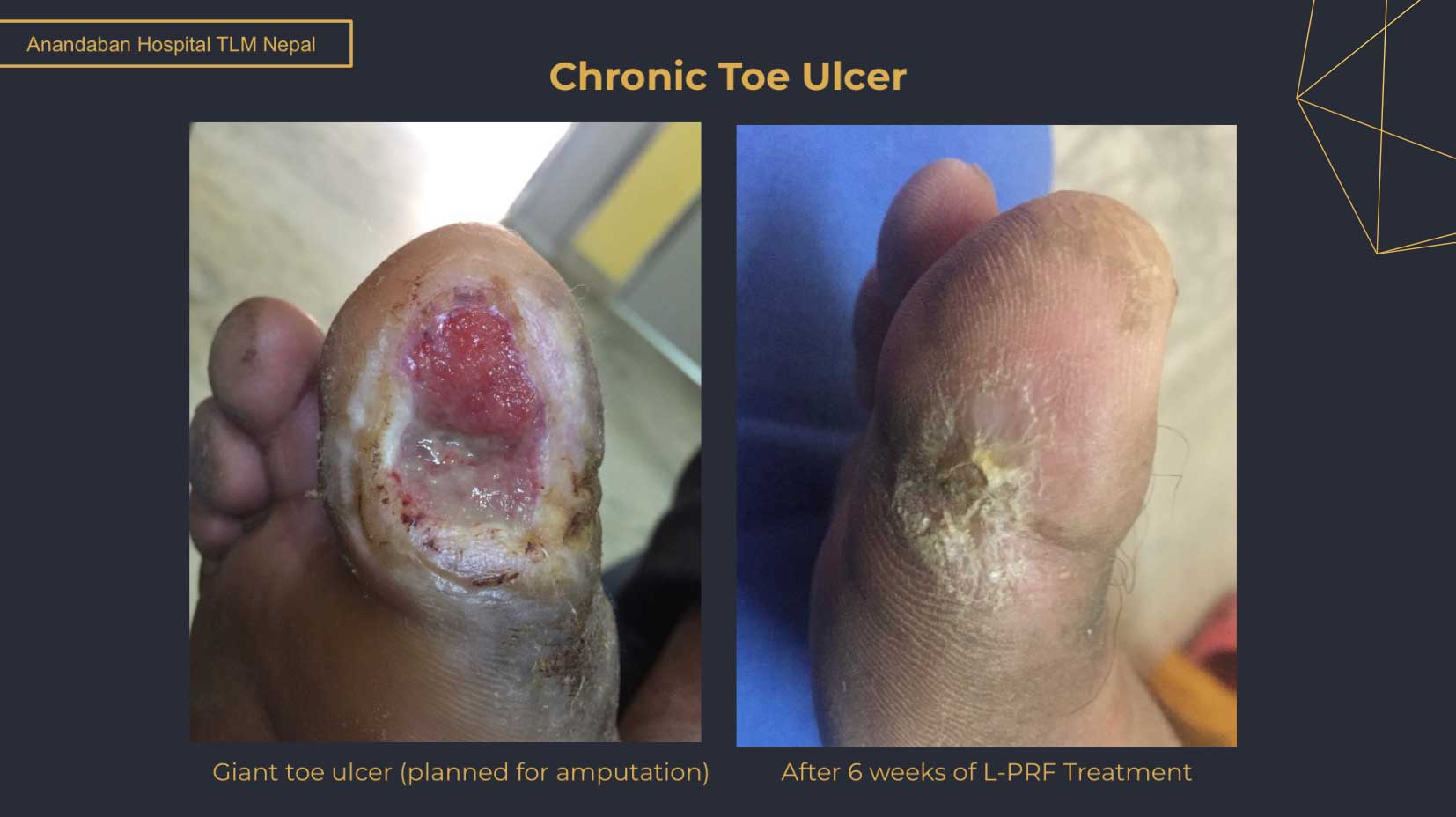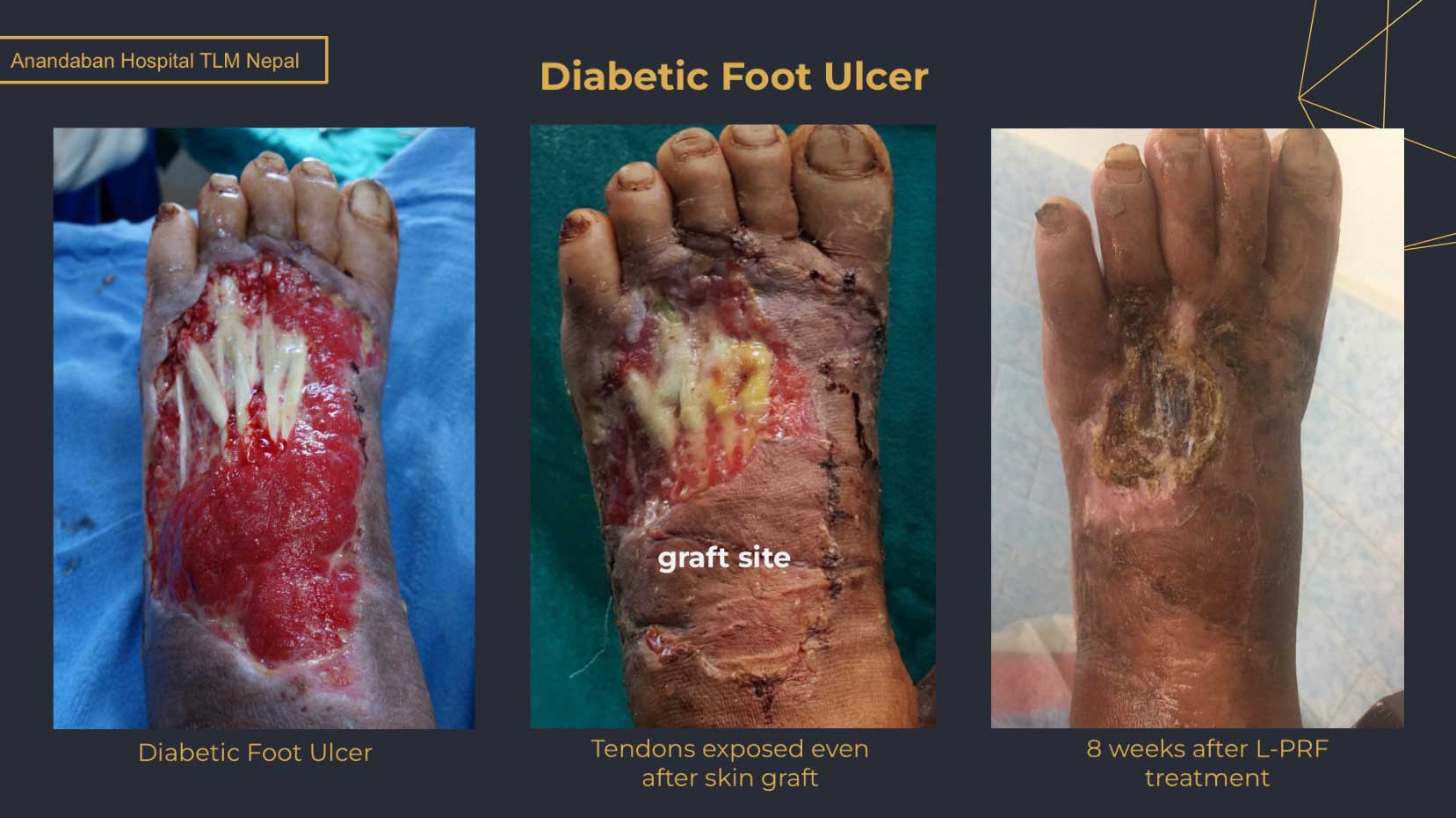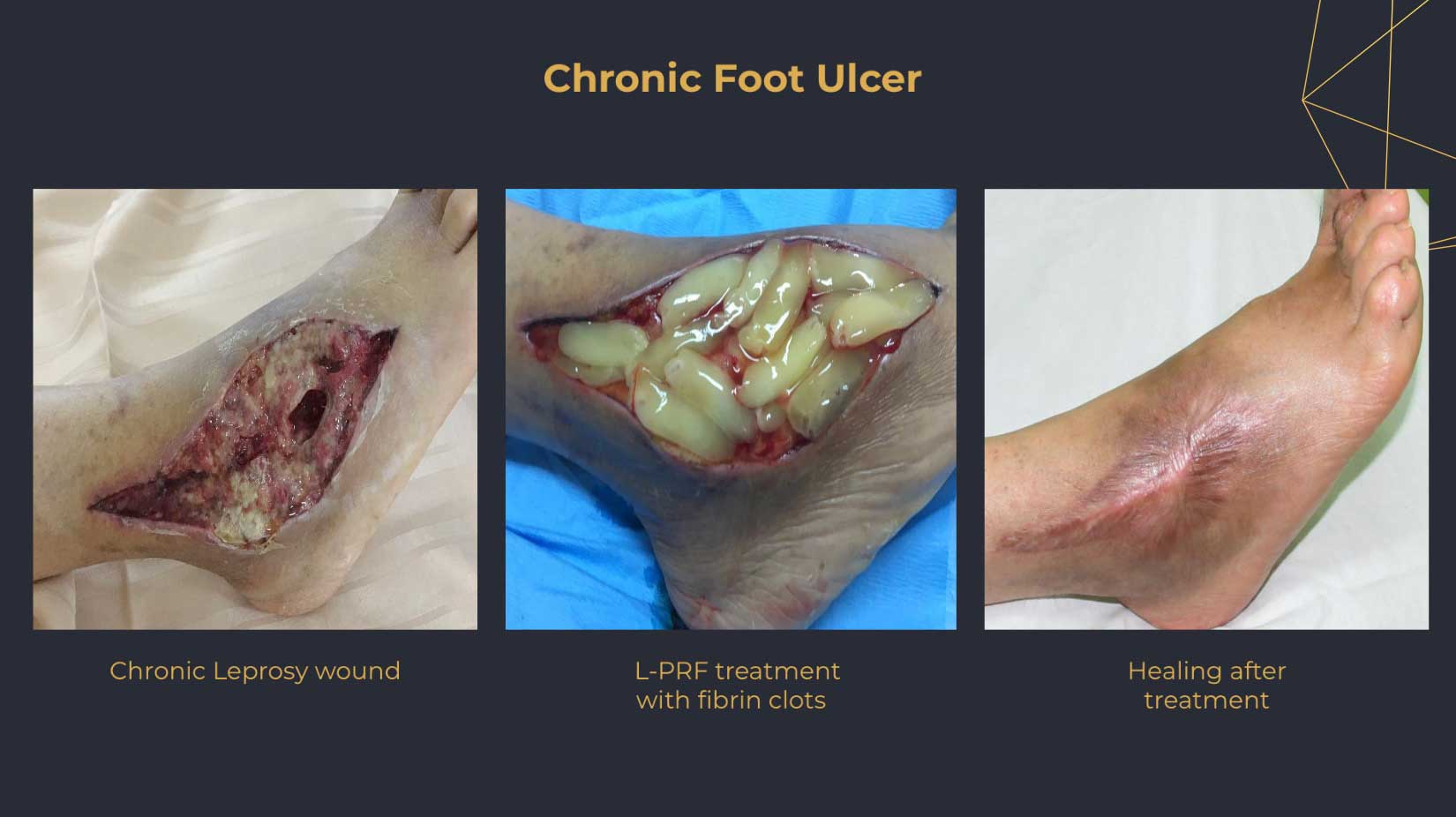 - L-PRF (Leukocyte Platelet Rich Fibrin) wound healing is a simple, safe, cost-effective and autologous technology-based approach, suitable for treating chronic wounds such as diabetic foot ulcers, venous ulcers, traumatic ulcers, leprosy foot ulcers, small burns and many more.